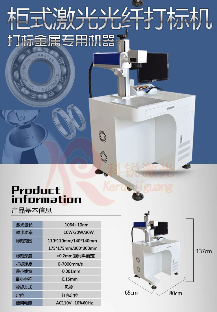 當今國際上*********激光標記設(shè)備,具有光束質(zhì)量好,體積小、速度快、工作壽命長、安裝靈活方便以及免維護等特點。廣泛用于是集成電路芯片、電腦配件、工業(yè)軸承、鐘表、電子及通訊產(chǎn)品、航天航空器件、各種汽車零件、家電、五金工具、模具、電線電纜、食品包裝、首飾、煙草以及軍用事等眾多領(lǐng)域圖形和文字的標記,以及大批量生產(chǎn)線作業(yè)。光纖激光器,國際***新型,***可靠結(jié)構(gòu),體積小巧,耗電量小,無高電壓無需龐大的水冷系統(tǒng)(僅需約300W),光束質(zhì)量高,接近理想光束,USB接口輸出控制,光學掃描振鏡,激光重復頻率高,高速無畸變。